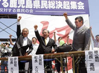 7日與首相鳩山由紀夫會談時拒絕轉移訓練要求的德之島3位町長和鹿兒島縣知事伊藤祐一郎也參加了集會。伊仙町町長大久保明表示:“向首相傳達了堅決反對的民意!