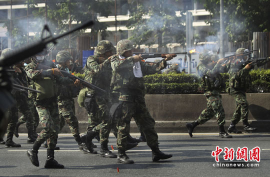 據(jù)當(dāng)?shù)孛襟w報道,15日下午,泰陸軍已宣布曼谷拉差帕宋作為一個實彈射擊區(qū),禁止公眾進(jìn)入反政府示威者與士兵發(fā)生沖突加劇的這一有限區(qū)域。軍隊也提出警告,新聞記者也不得進(jìn)入拉差帕宋。