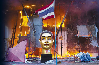中新網(wǎng)5月20日電 據(jù)香港《文匯報(bào)》報(bào)道,泰國軍方19日清場,希望將陷入內(nèi)戰(zhàn)邊緣的曼谷拯救出來,雖然紅衫軍節(jié)節(jié)敗退,但有激進(jìn)分子未肯罷休,四處放火,電視臺(tái)、股票交易所、電力公司、幾間銀行、商場戲院都遭殃,商場和便利店亦成為搶掠目標(biāo)。據(jù)報(bào)曼谷有27處地方起火,泰國最大的商場Central World、Siam Square和Siam Paragon三大購物中心被縱火,其中Central World燒通頂,據(jù)報(bào)快將倒塌。