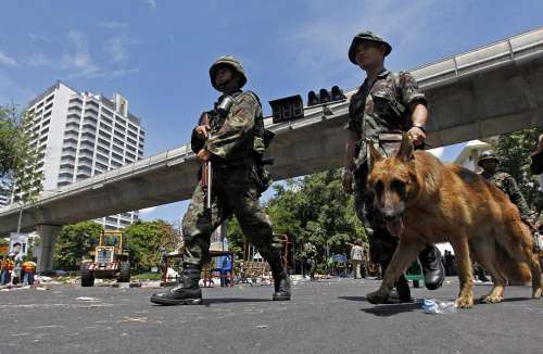 由于軍方早前在四季酒店內(nèi)曾經(jīng)發(fā)現(xiàn)爆炸品,軍隊(duì)帶同犬只搜索紅衫軍有沒有留下危險(xiǎn)物品。泰國軍方表示,恢復(fù)曼谷市面秩序的行動(dòng)于下午4時(shí)結(jié)束,之后清掃街道等工作將移交給曼谷市當(dāng)局。此外,軍隊(duì)和民眾21日早上開始對除拉差巴頌地區(qū)以外的紅衫軍集會(huì)地區(qū)的街道進(jìn)行清掃,拆除路障。