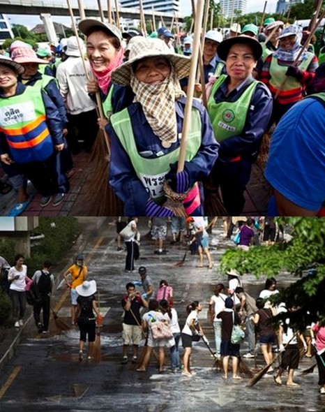 據(jù)報道,曼谷當(dāng)局估計,23日當(dāng)天大約有4000名志愿者自發(fā)走上街頭,參加對街道、市容的大整頓、大清洗活動。這比原本預(yù)計的3000人要多。