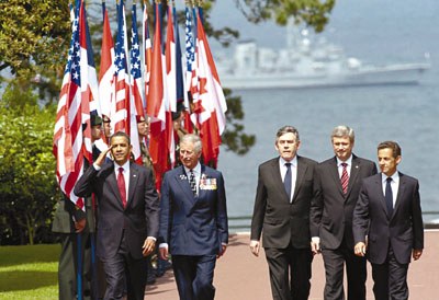 會面后,4人之后會一同前往美軍墓園,與英國首相布朗、英國王儲查爾斯和加拿大總理哈珀會合。奧巴馬在墓園內(nèi)向包括200名美國退役軍人的9000人發(fā)表講話。