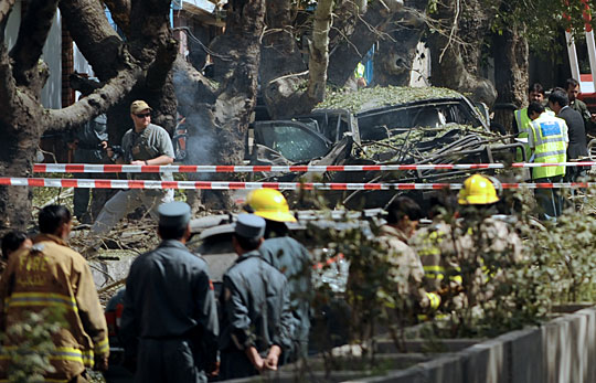 據(jù)報道,爆炸發(fā)生地附近有多國部隊駐扎。事發(fā)于早上8時許,一名自殺式襲擊者駕駛滿載炸藥的汽車,在北約駐阿富汗國際安全援助部隊(ISAF)總部門外引爆炸彈。爆炸導(dǎo)致大樓玻璃粉碎,附近多輛汽車損毀,地上血漬斑斑。