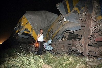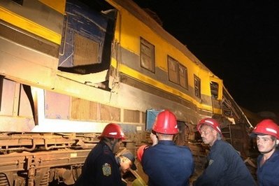 一列預(yù)定前往南方阿斯旺(Aswan)的火車,24日行駛到開羅附近40公里的吉薩(Giza)時,遭另一列火車從后方追撞,造成其中一節(jié)車廂翻覆。由于出事地點靠近運河,救難人員必須以樹干搭起克難的橋梁,將傷者從火車上救出。