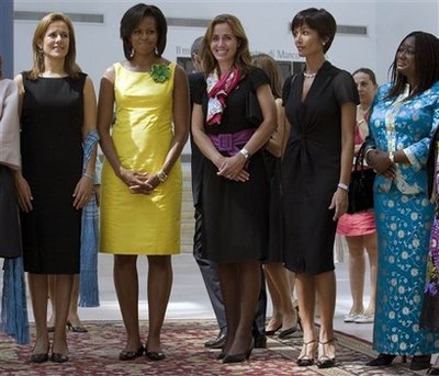 中新網(wǎng)7月11日電 G8領(lǐng)袖忙著討論世界大事,第一夫人們也忙得不得了。據(jù)臺(tái)灣東森新聞網(wǎng)報(bào)道,美國(guó)第一夫人米歇爾與奧巴馬一同訪問俄羅斯時(shí),手上的名牌鱷魚價(jià)格昂貴,顯然改走起奢華風(fēng),連帶英國(guó)首相夫人莎拉也受到感染,在G8高峰會(huì)上,6小時(shí)換3套衣服。