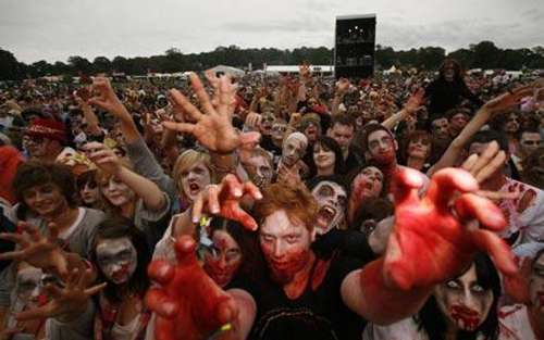 這幕駭人畫面出現(xiàn)在該市舉行的大寒音樂節(jié)(Big Chill festival)上,共有4026人把自己打扮成形狀可怖的僵尸。他們還參與了一部僵尸片的拍攝。不過,主辦單位相信實(shí)際數(shù)目遠(yuǎn)不止此,因?yàn)檫有很多人沒有填寫表格。