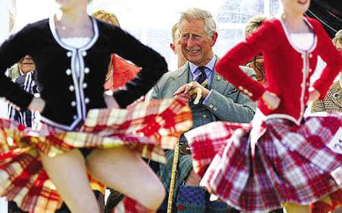 報(bào)道稱,日前查爾斯首次在妻子卡米拉陪同下,到蘇格蘭北部高地出席貴族競(jìng)技賽。活動(dòng)上,有女舞蹈演員起舞助興,舞動(dòng)時(shí)揚(yáng)起了蘇格蘭裙露出黑色內(nèi)褲和美腿,查爾斯看見后,一邊微笑一邊緊盯。