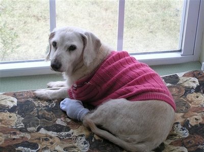 夏妮是六個星期大的時候,在收容中心被主人認(rèn)養(yǎng),從一只棄犬變成好命狗,這些年,它因為白內(nèi)障,必須戴護目鏡,主人幫它量身訂做了一副眼鏡,老狗怕冷,主人還幫它織毛衣。日前夏妮在住處壽終正寢。