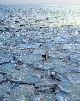 但是奇跡發(fā)生了:這只英勇而又幸運的小狗踩著浮冰,順河再往北漂流了50英里,直到河流的入?,一艘科考船發(fā)現(xiàn)了它的蹤影。