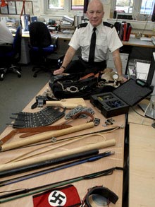 英國(guó)德文郡警方日前對(duì)一家民宅進(jìn)行突襲搜查時(shí),赫然發(fā)現(xiàn)一個(gè)“性地牢”,里面有數(shù)百件包括鞭子、手銬、成人玩具和納粹軍服在內(nèi)的物件。警方懷疑,這家民宅實(shí)質(zhì)上是個(gè)地下妓院。