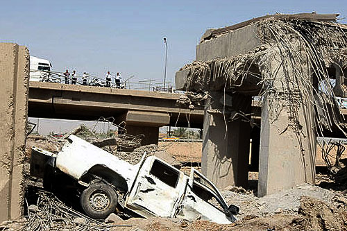當(dāng)天上午,在伊拉克財政部旁邊的立交橋下發(fā)生一起爆炸案,一輛裝載有炸彈的汽車發(fā)生爆炸,造成立交橋部分橋體被炸毀,至少28人死亡,逾200人受傷,10層樓高的財政部也遭受了嚴(yán)重損毀。