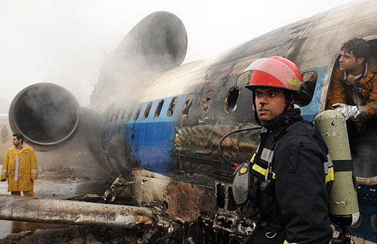 另外,伊朗官員稱這架蘇制TU-154客機(jī)尾部起火,隨后客機(jī)沖出跑道,尾部斷裂。
