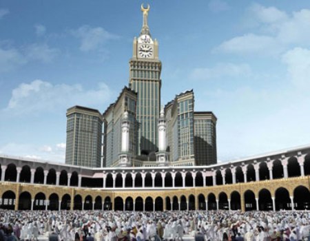 在建的麥加“鐘樓”主體包括662米的混凝土建筑和155米高的“克雷森特”金屬尖頂。