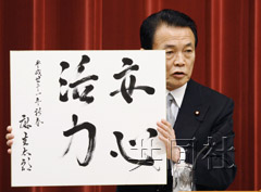 中新網1月5日電 據(jù)新加坡《聯(lián)合早報》報道,日本首相麻生太郎酷愛看漫畫,卻因為經常讀錯日文漢字,而被日本動畫大師宮崎駿譏笑。不過,麻生太郎為了證明自己對漢字的認識和對書法的掌握,元旦時揮毫寫下了“安心活力”四個字。