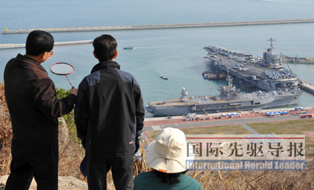 其中滿載排水量達(dá)10.2萬噸的“斯坦尼斯”號航母從加利福尼亞州圣迭戈海軍基地出發(fā),2月18日攜5000名艦員及其他4艘護(hù)艦艇抵達(dá)香港休整。2月27日上午,“斯坦尼斯”號航母編隊?咳毡咀羰辣\姼。演習(xí)期間,為防止朝鮮試射“大浦洞”2型遠(yuǎn)程彈道導(dǎo)彈,美軍出動的“宙斯盾”級導(dǎo)彈驅(qū)逐艦達(dá)到7艘,其規(guī)模為歷次演習(xí)所罕見。