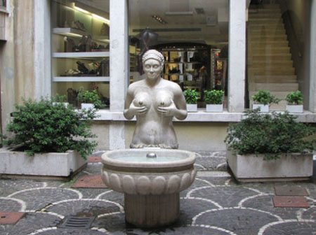 前些天,圓明園兩個青銅獸首的拍賣引起軒然大波,然而很多人不知道,獸首的原作者意大利人郎世寧,卻是精于女性裸體噴泉設計的人。像這樣充分展現(xiàn)人體的情趣噴泉,在人口非常稠密的商業(yè)區(qū)也能見到。因為曾經有過那樣一個黑暗的對人性壓抑的中世紀,于是文藝復興以來,歐洲人對于身體的贊美和歌頌,處處都散發(fā)著返璞歸真的氣息。在人體藝術方面,歐洲人似乎很少去追究色情和藝術的差別,或許在他們眼里,只要能夠使城市變得更加具有情趣的東西,就一定是美和藝術的吧。(張樾 )
