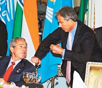 出席八國(guó)峰會(huì)時(shí),與英國(guó)前首相布萊爾邊吃邊談,不知道桌上的話筒沒(méi)關(guān),布什提到真主黨時(shí)候,說(shuō)了粗話“shit(狗屎)”