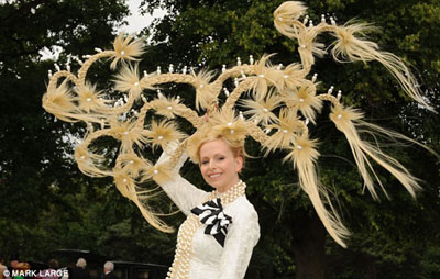 中新網(wǎng)6月19日電 據(jù)英國媒體報道,英國皇家賽馬會18日進(jìn)入第三天,也就是英國人所稱的“淑女日”,依照傳統(tǒng),這一天女士們都會戴著造型奇特創(chuàng)意十足的帽子亮相,爭奇斗艷吸引眼球。
