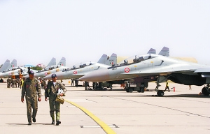 印度空軍以前認(rèn)為機(jī)場(chǎng)和跑道目標(biāo)明顯、防護(hù)脆弱,如果將戰(zhàn)機(jī)部署在靠近邊境的一線機(jī)場(chǎng),很容易因機(jī)場(chǎng)和跑道被毀而喪失戰(zhàn)斗力。但在“攻勢(shì)”戰(zhàn)略的指導(dǎo)下,印度空軍認(rèn)為戰(zhàn)機(jī)前置部署顯然更有利于向?qū)κ职l(fā)起“先發(fā)制人”的攻擊,這樣機(jī)場(chǎng)和跑道防護(hù)脆弱的缺點(diǎn)就不用那么令人牽腸掛肚了。