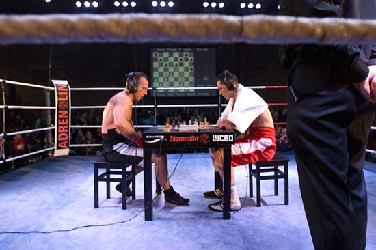 這個(gè)比賽結(jié)合了腦袋和拳頭的較量。比賽規(guī)則很簡(jiǎn)單,先進(jìn)行4分鐘的國際象棋比賽,然后再進(jìn)行3分鐘的拳擊比賽,象棋和拳擊交替進(jìn)行,11個(gè)回合之后比賽結(jié)束。參賽者是否取勝要看是否能在擂臺(tái)上擊倒對(duì)手并在棋盤上將死對(duì)手。主辦者希望通過這個(gè)比賽證明,戰(zhàn)士可以成為智者,智者也可以是戰(zhàn)士。
