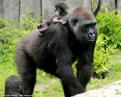 中新網(wǎng)8月4日電 據(jù)英國(guó)媒體報(bào)道,去年德國(guó)明斯特市動(dòng)物園一只大猩猩不幸喪子,但不愿舍棄兒子的尸體,這一畫(huà)面曾感動(dòng)眾多游客。而今年有好消息傳來(lái),這只大猩猩再次當(dāng)上了媽媽?zhuān)恍囊灰庹疹櫺殞毐M顯母愛(ài),再次令游客動(dòng)容。