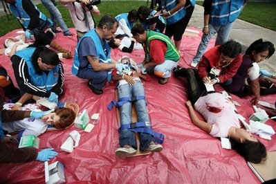 根據(jù)地震演習(xí)組織的數(shù)字統(tǒng)計(jì),超過一千萬加州居民參加了今天上午舉行的美國有史以來最大地震演習(xí),以紀(jì)念舊金山大地震二十周年。參與者在辦公室、餐館、公共交通工具、學(xué)校以及家中演練了在大地震來臨時(shí),如何保護(hù)自己及援救他人。