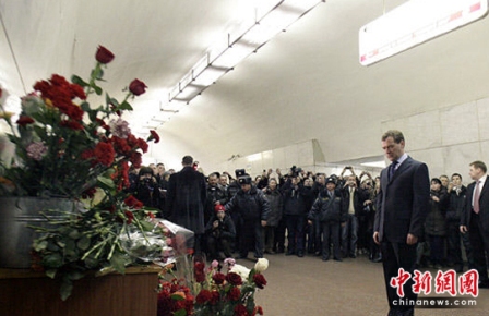 人們?cè)诎l(fā)生爆炸的“盧比揚(yáng)卡”地鐵站以及“文化公園”地鐵站設(shè)立了紀(jì)念處,向亡者獻(xiàn)上鮮花寄托哀思。俄羅斯總統(tǒng)梅德韋杰夫29日傍晚來(lái)到“盧比揚(yáng)卡”地鐵站獻(xiàn)花,并矢言將嚴(yán)懲發(fā)動(dòng)襲擊的不法分子。