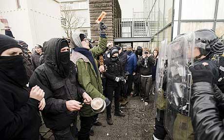 據(jù)星島環(huán)球網(wǎng)報(bào)道,示威者在冰島首都雷克雅未克國(guó)會(huì)大樓附近聚集,國(guó)營(yíng)電臺(tái)的消息說(shuō),有20人被捕。冰島多間銀行欠下龐大外債,拖累國(guó)家財(cái)政崩潰,預(yù)期今年經(jīng)濟(jì)會(huì)大幅收縮,失業(yè)率上升。