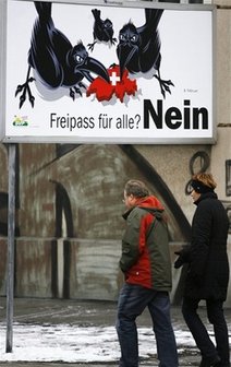 投票前宣傳期間,人民黨以一幅三只兇惡黑烏鴉正啄食一塊鮮紅瑞士地圖的海報來反對新的外來勞工,還曾引起羅馬尼亞外交關(guān)切。