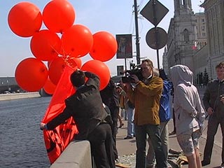 據(jù)俄羅斯新聞網(wǎng)報(bào)道,俄羅斯反對(duì)黨“團(tuán)結(jié)運(yùn)動(dòng)”組織成員4月28日在克里姆林宮前舉行了聲勢(shì)浩大的反政府游行活動(dòng)。期間,3名“團(tuán)結(jié)運(yùn)動(dòng)”的積極分子在克里姆林宮附近的河岸邊懸掛紅色的巨型橫幅,上面印有:“梅德維杰夫,辭去普京總理職務(wù)!弊謽,橫幅兩邊系有紅色的氣球,橫幅下部印有“團(tuán)結(jié)運(yùn)動(dòng)”組織的徽標(biāo)。