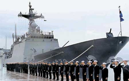 中新網(wǎng)3月4日電 據(jù)韓國(guó)《中央日?qǐng)?bào)》報(bào)道,3日,將被派遣到索馬里海域的韓國(guó)海軍“清海部隊(duì)”成立儀式在海軍作戰(zhàn)司令部釜山基地舉行。清海部隊(duì)擁有一艘4500噸級(jí)驅(qū)逐艦“文武大王艦”、一架反潛直升機(jī)和30名履行訊問(wèn)搜索任務(wù)的特戰(zhàn)人員等,加上文武大王艦上原有的船員,總規(guī)模達(dá)到了300多人。