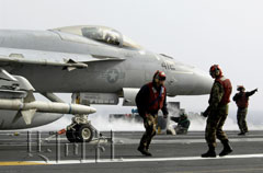 媒體記者在首爾南部京畿道的美空軍烏山基地乘上運輸機,經(jīng)過約1小時15分后著陸在斯坦尼斯號上。對于斯坦尼斯號的所在方位,美軍方面僅表示位于距日本海的韓國沿岸“東北方向約200英里(約320公里)的海上”。
