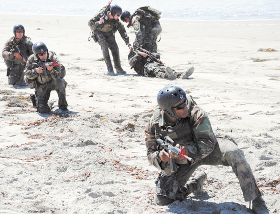 據(jù)了解,海豹突擊隊(duì)候選者在通過(guò)嚴(yán)格體能測(cè)試后,將會(huì)參加為期6個(gè)月的基礎(chǔ)水下訓(xùn)練課程,分3階段進(jìn)行。第一階段有一個(gè)“地獄周”的訓(xùn)練,在5天半的持續(xù)訓(xùn)練期間,候選者總共的睡眠時(shí)間加在一起最多不超過(guò)4個(gè)小時(shí)。在訓(xùn)練中他們要拖著沉重的橡皮艇經(jīng)過(guò)沙丘,沖進(jìn)激浪。第二階段主要進(jìn)行長(zhǎng)距離潛水練習(xí),該能力也是海豹突擊隊(duì)在眾多特種部隊(duì)中獨(dú)樹(shù)一幟的地方。第三階段主要訓(xùn)練海豹突擊隊(duì)學(xué)員對(duì)武器的基本操作技能、破壞技術(shù)和小部隊(duì)的戰(zhàn)術(shù)配合。通過(guò)之后,候選者將在陸軍傘兵學(xué)院接受為期3周的基礎(chǔ)空降訓(xùn)練。一名海豹突擊隊(duì)隊(duì)員介紹平時(shí)訓(xùn)練時(shí)說(shuō)到,從飛機(jī)上跳下對(duì)于普通人來(lái)說(shuō)也許很困難,但對(duì)于海豹突擊隊(duì)員來(lái)說(shuō)卻是非常普通的訓(xùn)練,掌握這項(xiàng)技能的訣竅就是不斷的訓(xùn)練,使其成為一種習(xí)慣。最后,所有的海豹突擊隊(duì)員還必須接受為期3個(gè)月的海豹突擊隊(duì)?wèi)?zhàn)術(shù)訓(xùn)練項(xiàng)目,完成這一項(xiàng)目后,他們就成為一名令人羨慕的海豹突擊隊(duì)員了。