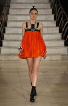 朱利安•麥當(dāng)勞就表示,這場(chǎng)時(shí)裝秀設(shè)計(jì)重點(diǎn)是以軟毛無光澤與光澤和玻璃碎片來營造都市時(shí)尚感。而另外一位以簡(jiǎn)約摩登著稱的英國設(shè)計(jì)師杰斯波•康蘭則是以黑色基調(diào)貫穿全場(chǎng),在歌劇卡門的音樂下,一位位模特兒以馬甲修飾身材曲線,充滿復(fù)古風(fēng)情。杰斯波•康蘭說,大量使用黑色的靈感來自X光線,而外部堅(jiān)挺內(nèi)部卻又柔軟的展現(xiàn),讓女性同時(shí)展現(xiàn)性感、調(diào)皮與自信。