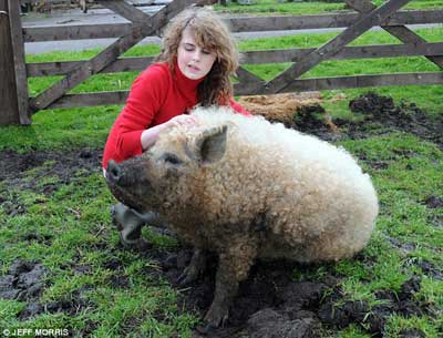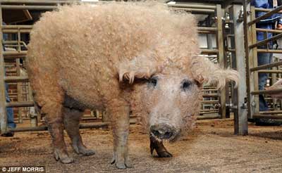 這只名叫伊麗莎白的豬是一個(gè)稀有的奧地利品種,由于長著一身酷似綿羊的卷毛,在近日的拍賣會(huì)上引起眾多關(guān)注。很多人競相出價(jià),最后一個(gè)農(nóng)民Tim Fitton出價(jià)250英鎊買下了它,并將之送給女兒。