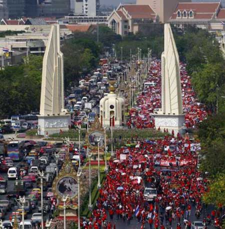 這是阿披實上臺以來反獨聯(lián)在曼谷舉行的第三次大規(guī)模反政府集會示威活動。去年十二月二十九日和三十日,反獨聯(lián)的支持者封鎖泰國國會大院,迫使阿披實臨時使用外交部代替國會大廈發(fā)表施政綱領(lǐng)。今年一月三十一日,反獨聯(lián)在王家田廣場和總理府前舉行大規(guī)模集會,要求阿披實解散國會下議院、加快對去年占領(lǐng)總理府和曼谷兩個機場的人民民主聯(lián)盟(民盟)領(lǐng)導(dǎo)人的起訴進程、解除支持民盟的外長喀實的職務(wù)。