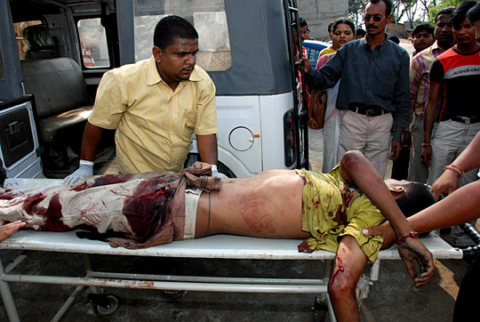 警方表示,第一起爆炸發(fā)生在當(dāng)?shù)貢r(shí)間下午2時(shí)左右,古瓦哈蒂市區(qū)的Maligaon商場(chǎng),當(dāng)時(shí)正逢學(xué)生放學(xué)和購(gòu)物群眾擁擠時(shí)刻,一輛停放路邊的機(jī)車突然發(fā)生強(qiáng)烈爆炸,當(dāng)場(chǎng)炸死6人,隨后有一人傷重不治,另約有30人受傷,。