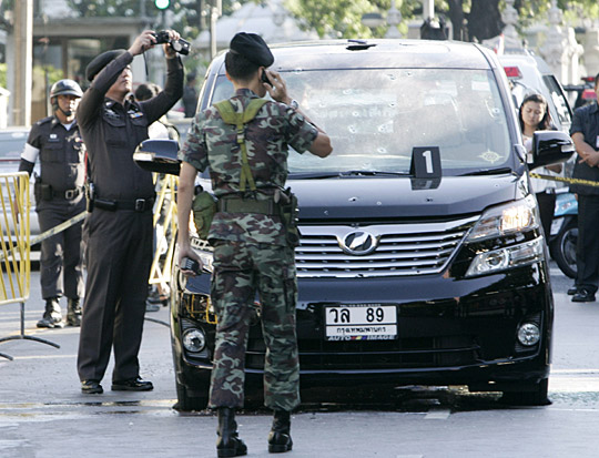 中新網(wǎng)4月17日電 綜合外電報道,泰國人民民主聯(lián)盟(PAD)領(lǐng)導(dǎo)人林明達(dá)(Sondhi Limthongkul)所乘坐的汽車在17日早晨遭到槍手襲擊,林明達(dá)受輕傷,但其司機傷勢嚴(yán)重。