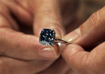 據(jù)拍賣商估計,這顆重7.03克拉的藍(lán)色鉆石戒指,其售價大約在580萬美元(390萬英鎊)至850萬美元(570萬英鎊)之間。