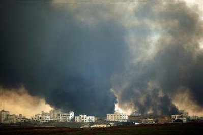 以色列空軍說,以軍飛機(jī)在夜間共發(fā)動(dòng)60多次空襲,攻擊重點(diǎn)集中在靠近埃及邊境被用來偷運(yùn)武器的地道。在加沙城郊街頭,以軍部隊(duì)與哈馬斯民兵展開激戰(zhàn),報(bào)道說當(dāng)?shù)赜屑ち业臋C(jī)槍聲。