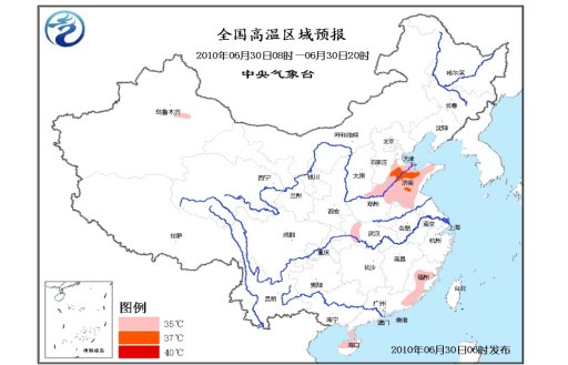 中新網(wǎng)6月30日電 據(jù)中國氣象局網(wǎng)站消息,中央氣象臺今日6時繼續(xù)發(fā)布高溫藍色預(yù)警,預(yù)計,今天白天,黑龍江、山西等地的高溫天氣將暫時告一段落,河北南部、河南東部和北部、山東大部、安徽北部、江蘇西北部、湖北西部、福建中南部的部分地區(qū)、廣東東部、海南北部等地將會出現(xiàn)35~37℃的高溫。另外,預(yù)計未來幾天,中國主要降雨帶將明顯北抬。