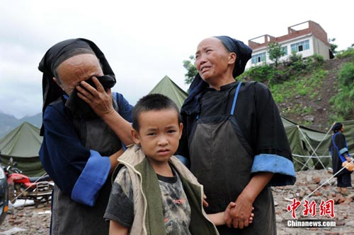 “可能是救不出來(lái)了!贝笳逵罉(lè)組70歲的布依族老漢盧正安低聲囁嚅著。盡管這么說(shuō),但他還是不住的向家的方向望去。伴著28日中午大山的一聲巨大悶響,巨大的泥石流將他在貴州關(guān)嶺縣大寨村大崗嶺半山腰上的家埋得沒(méi)了蹤影。不僅是所有家當(dāng),被埋的還有他正在家中吃午飯的15歲孫子小川。