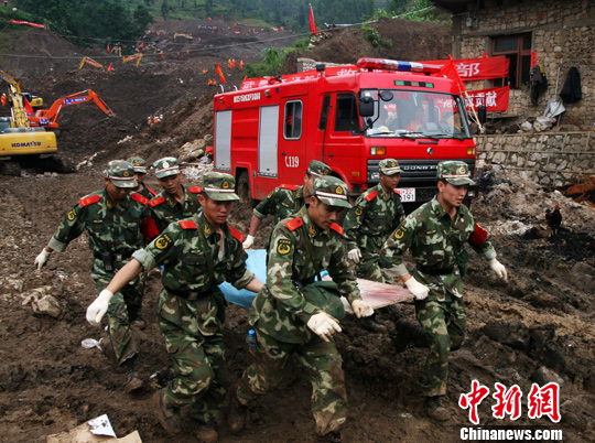 50個(gè)小時(shí)過(guò)去了,冒著山體隨時(shí)可能再次垮塌的危險(xiǎn),救援者從泥漿和碎石中搜救出六位被埋者的遺體。在30日下午發(fā)掘第五位失蹤者遺體時(shí),在陽(yáng)光下結(jié)板的泥漿和碎石讓官兵的救援行動(dòng)異常困難,不到半小時(shí)間便敲斷了3根鐵鍬和一把榔頭。當(dāng)失蹤者的遺體被挖掘出來(lái)裹上毛毯放上擔(dān)架后,記者看見旁邊手拿紅旗的一位武警戰(zhàn)士紅了眼圈。