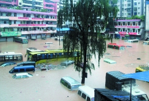 此外,從8日21時開始,地處渝東南山區(qū)的酉陽縣出現(xiàn)大暴雨,該縣鐘多鎮(zhèn)、大溪鎮(zhèn)、后溪鎮(zhèn)、酉酬鎮(zhèn)、泔溪鎮(zhèn)等10個鄉(xiāng)鎮(zhèn)達(dá)大暴雨,暴雨造成縣城電力供應(yīng)中斷,縣城東風(fēng)壩、城北車站、小商品一條街、桃花源中路門面進水,水深1.5米左右,部分車輛被淹沒。