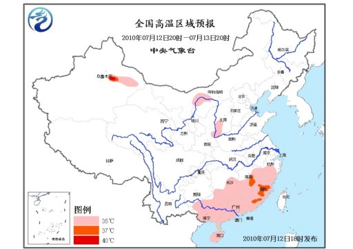 中新網(wǎng)7月12日電 中央氣象臺7月12日18時繼續(xù)發(fā)布高溫藍色預(yù)警:預(yù)計,明天白天,內(nèi)蒙古河套地區(qū)、陜西關(guān)中東部、山西西南部、湖南中南部、江西中南部和東北部、浙江中南部、福建大部、廣東大部、廣西大部、海南大部、臺灣西北部等地有35℃以上高溫天氣、局地溫度可達37~38℃。