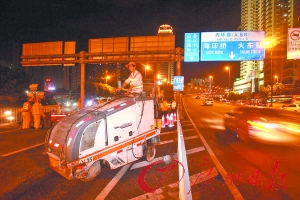 本報(bào)訊(記者倪明、王鶴)從昨日22時(shí)開(kāi)始,內(nèi)環(huán)路南田路入口至江灣橋南出口,黃埔大道放射線出口段兩處路段約4公里全封閉施工,施工單位將趁著周末和單雙號(hào)限行,交通量相對(duì)較少的機(jī)會(huì)24小時(shí)刨鋪瀝青,爭(zhēng)取在下周一白天重新開(kāi)放封閉路段。昨晚10時(shí)07分,記者驅(qū)車(chē)前往南田路入口,只見(jiàn)電子提示牌上已閃現(xiàn)封閉通知,沿路可見(jiàn)懸掛的車(chē)輛繞行指引提示牌。在現(xiàn)場(chǎng)交警的指揮下,交通秩序尚好。交警人士透露,大修啟動(dòng)后,馬上迎來(lái)單雙號(hào)演練,對(duì)交通影響不大,但單雙號(hào)演練結(jié)束后,廣州交通將面臨考驗(yàn)。