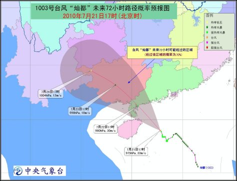 預(yù)計(jì),“燦都”將以每小時(shí)10-15公里的速度向西北方向移動,逐漸向海南文昌到廣東陽江一帶沿海靠近,并有可能于22日早晨到下午在這一帶沿海登陸。