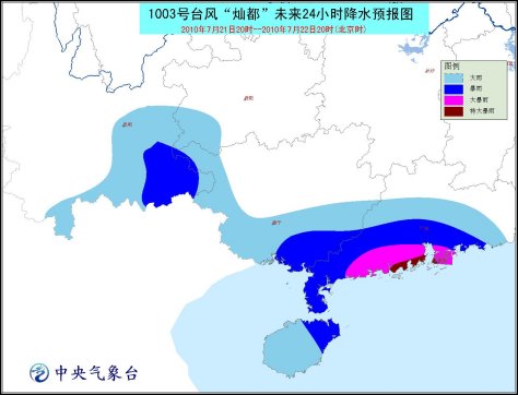 受其影響,21日晚上到22日白天,南海中北部海面、海南東部和北部沿海、瓊州海峽、北部灣大部海面、廣東沿海、廣西沿海將有7-9級大風(fēng),部分海域或地區(qū)風(fēng)力可達(dá)10-11級,“燦都”中心經(jīng)過的附近海面或地區(qū)的風(fēng)力可達(dá)12-13級。廣東中南部、海南、廣西東南部將有大雨或暴雨,其中廣東沿海和海南北部的局部地區(qū)有大暴雨或特大暴雨。