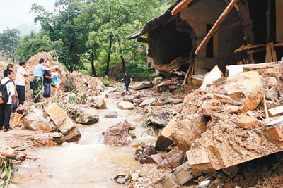 在邵佳炳的記憶里,1987年那50年一遇的洪水和泥石流,危害也很大,有房子被沖毀。時(shí)隔23年,這個(gè)小村組又遇百年不遇的雨災(zāi)、泥石流。