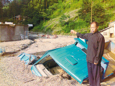 24日凌晨5點多,天麻麻亮,胡仁海聽到山洪聲音好大,就趕緊起來。他看到山洪激起的水浪有十幾丈高。胡仁海擔(dān)心大雨滑坡,就把孫子“拉拉”安頓在靠河的房子里。突然,身后一陣巨響,他回頭去看,只見巨大的山洪將靠河的房子連根沖走,他的孫子“拉拉”,嘩啦一下就被洪水沖走了……